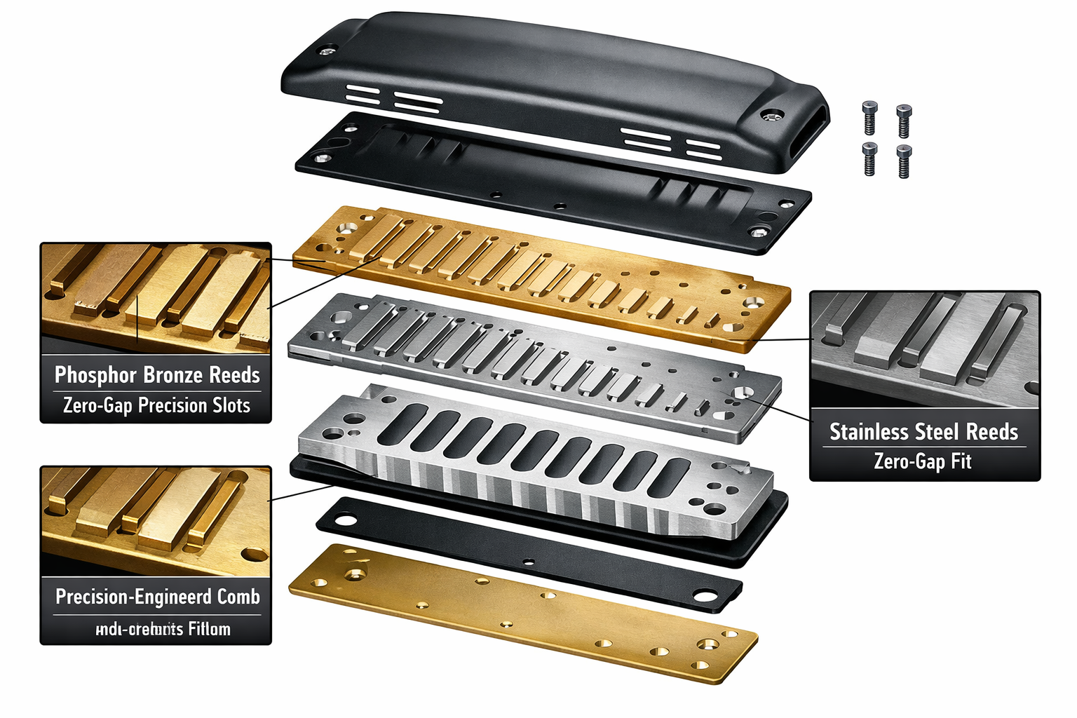 In the previous chapter, we touched upon how materials define the soul of music. However, as we progress further into 2026, the distinction between a "musical instrument" and a "precision-engineered masterpiece" has blurred. For the discerning artist, understanding the physics behind the breath is the final step toward tonal mastery.I. The Metallurgy of Expression: Why Material Science Matters While the choice between Phosphor Bronze and Stainless Steel is often framed as a matter of taste, it is rooted in structural physics. Phosphor Bronze contains a specific ratio of tin and phosphorus, which enhances its "modulus of elasticity." For the player, this translates to a warm, harmonic-rich timbre that responds to the softest whisper, ideal for soulful jazz or folk. Stainless Steel, by contrast, offers a higher tensile strength. This allows the reed to maintain its "pitch memory" even under the aggressive attacks of blues-rock, cutting through the mix with a brilliant, crystalline cla