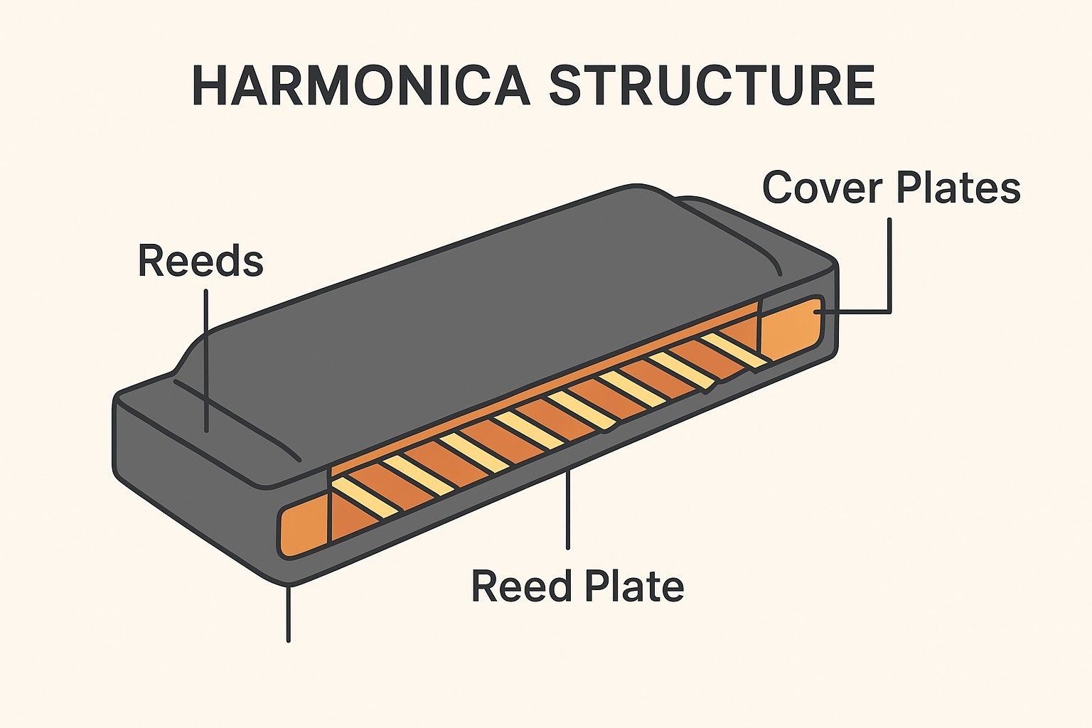 1. What Is a Harmonica and Why Is It So Popular? The harmonica is a small, portable, beginner-friendly free-reed instrument capable of producing expressive and emotional tones. In many musical circles, it is affectionately known as the harp. Its sound can be warm, bright, mellow, or gritty—making it a staple in blues, folk, pop, rock, country, and jazz music. Lightweight, affordable, and easy to learn, the harmonica is one of the world’s most popular beginner instruments.2. Harmonica Structure: A Miniature Sound System in Your Hand Despite its compact size, the harmonica has a sophisticated internal structure built around three main components:Reeds: The Heart of the Harmonica Thin metal strips that vibrate when air passes through—they are the heart of the instrument. The material (Brass, Phosphor Bronze, Stainless Steel) directly affects tone color and durability.Reed Plate The plate on which the reeds are mounted. The precision and material of the reed plate affect tuning accura