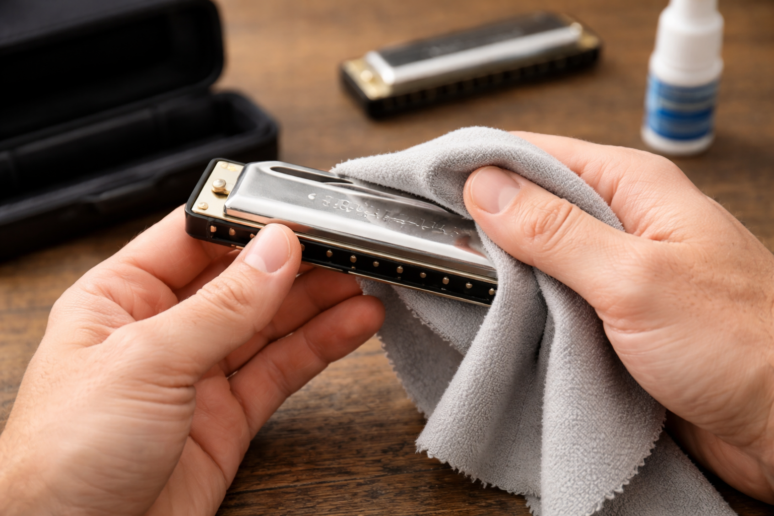 Moisture buildup is completely natural when playing the harmonica. Your breath contains humidity, and saliva can enter the instrument during extended sessions. This is especially common when: Playing for long periods Playing in cold environments Using strong breath pressure 👉 Key insight: Moisture is unavoidable—maintenance is everything. What Happens If You Don’t Clean It? 1. Muffled sound and slower response Moisture interferes with reed vibration. 2. Reed corrosion Long-term exposure leads to oxidation. 3. Odor and mold buildup Particularly in wooden comb harmonicas. 5 Essential Steps to Remove Moisture ✅ 1. Tap Out Moisture Hold the harmonica with holes facing down and gently shake or tap. ✅ 2. Light Tapping Tap it softly against your palm or cloth to release trapped droplets. ✅ 3. Air Drying (Most Important) Place it in a: Well-ventilated area Avoid direct sunlight Never store immediately in a case ✅ 4. Deep Cleaning (Advanced Players) Do this monthly: Dis